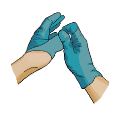 Once gloves have been used, they are contaminated and are a possible source of infection. Take them off without touching their outer surface following these illustrated steps.