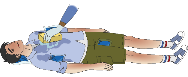 - Cool the casualty. Remove the casualty’s outer clothing and immerse the casualty in cool water (if possible) up to their chin. Watch them closely.