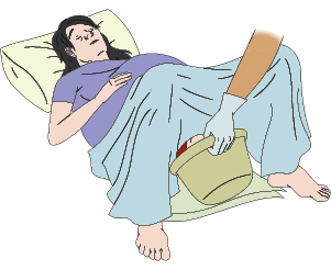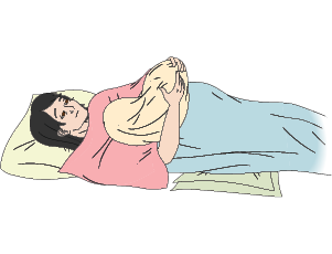 During the second stage of labour, when the baby will be born very soon, place the mother on their back with knees bent and head supported. If they prefer another position, use that position. Cover them with sheets so you can easily lift them to check on the progress of labour.
