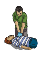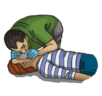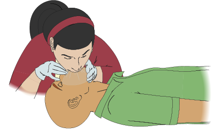 - Give 30 compressions followed by 2 breaths. Use your own barrier device if available.