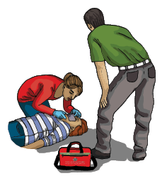In many locales, the 9-1-1 dispatcher is trained to coach you through an emergency until medical help arrives. Put your phone on speaker and place it by the casualty’s head and talk to the dispatcher throughout the rescue.