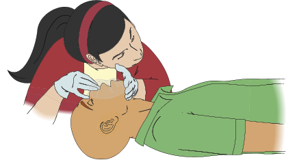 - Check for breathing for at least 5 and no more than 10 seconds.