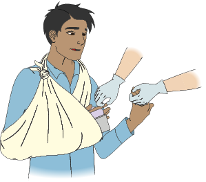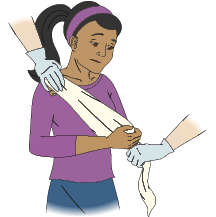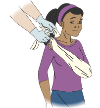 - Ask the casualty to support the forearm of their injured arm horizontally across their body.