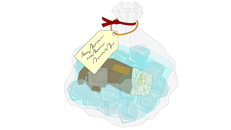 - Put the amputated part in a clean, watertight plastic bag and seal it.