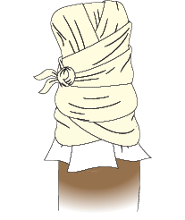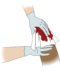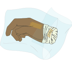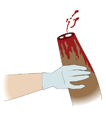 - Using a roller bandage, start by securing at the wrist, and then wrap up to the amputated part, applying pressure to the dressing.