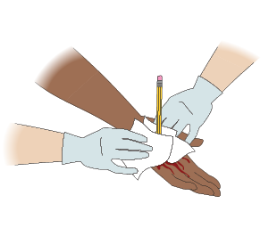 - If there is an embedded object, apply dressings around the object to maintain pressure around but away from the wound.