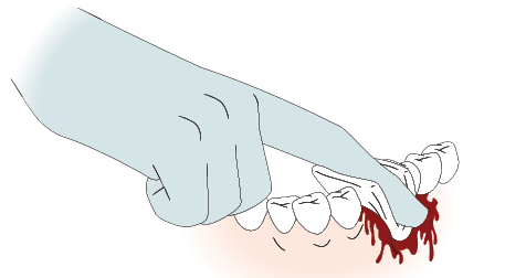 - Apply direct pressure to stop the bleeding from the socket of the tooth. Seat the casualty with their head forward so blood can drain out of their mouth.