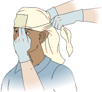 - Apply a thick, sterile dressing and bandage it firmly in place with a head bandage.