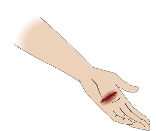 Wounds to the palm of the hand can bleed a lot and can be potentially serious due to the number of nerves and ligaments found in the hand. The palm of the hand is often injured by improper knife use in the kitchen, or moving items with sharp edges.