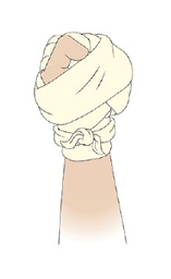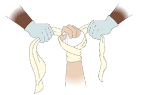 - Wrap the bandage tightly over the fingers and then down around the wrist.