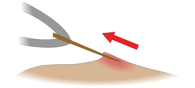 - Pull the sliver in a straight line in the opposite direction to the angle of entry.